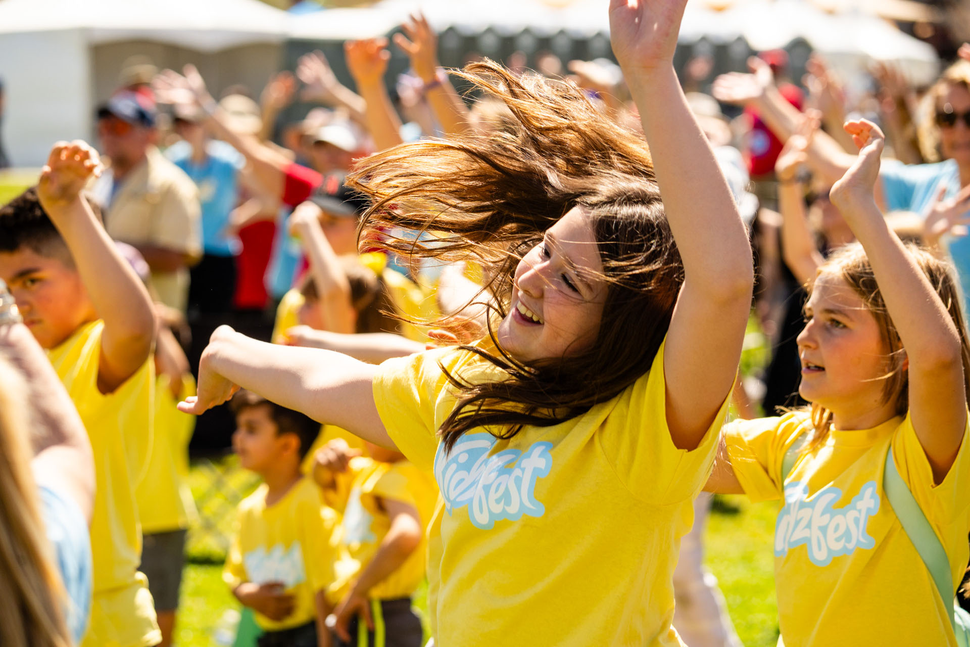 Kids waved their hands to Go Fish’s Bible songs during KidzFest, held in the afternoon. Unfazed by the blazing sun, they sang along about God’s love for the world. The more than 350 people who attended also watched a Gospel video geared toward children.