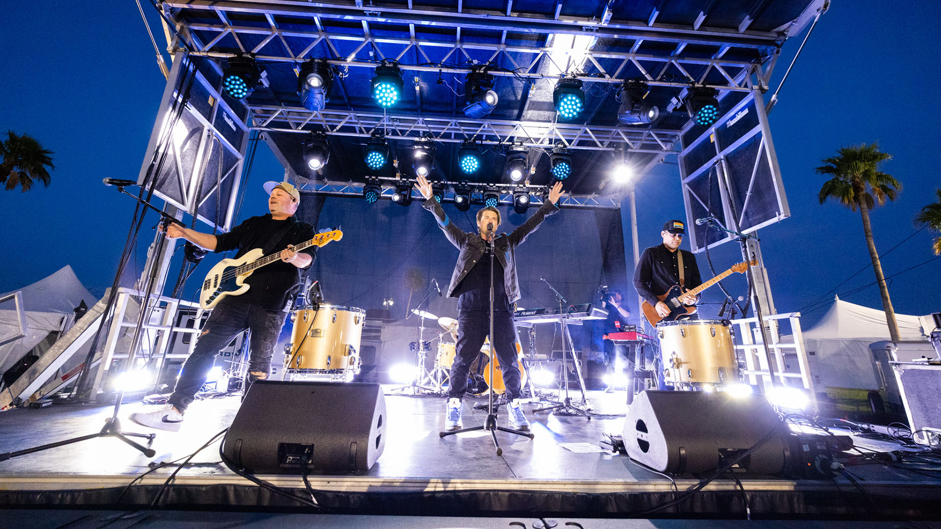 A grassy field disappeared beneath lawn chairs and picnic blankets as people gathered under the setting desert sun to hear music from Katy Nichole, The Afters, and Un Corazón before Graham’s message about “the best news ever.”