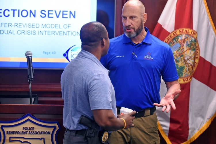 This training has no prerequisites and is free of charge. It is open to active-duty/retired law enforcement officers, chaplains, pastors, and anyone interested in serving regardless of their experience in law enforcement. Note: this training does not qualify participants to be certified as a “police chaplain” or a Billy Graham Rapid Response Team (BG-RRT) chaplain. If you are interested in applying to become a BG-RRT chaplain, find more information here.