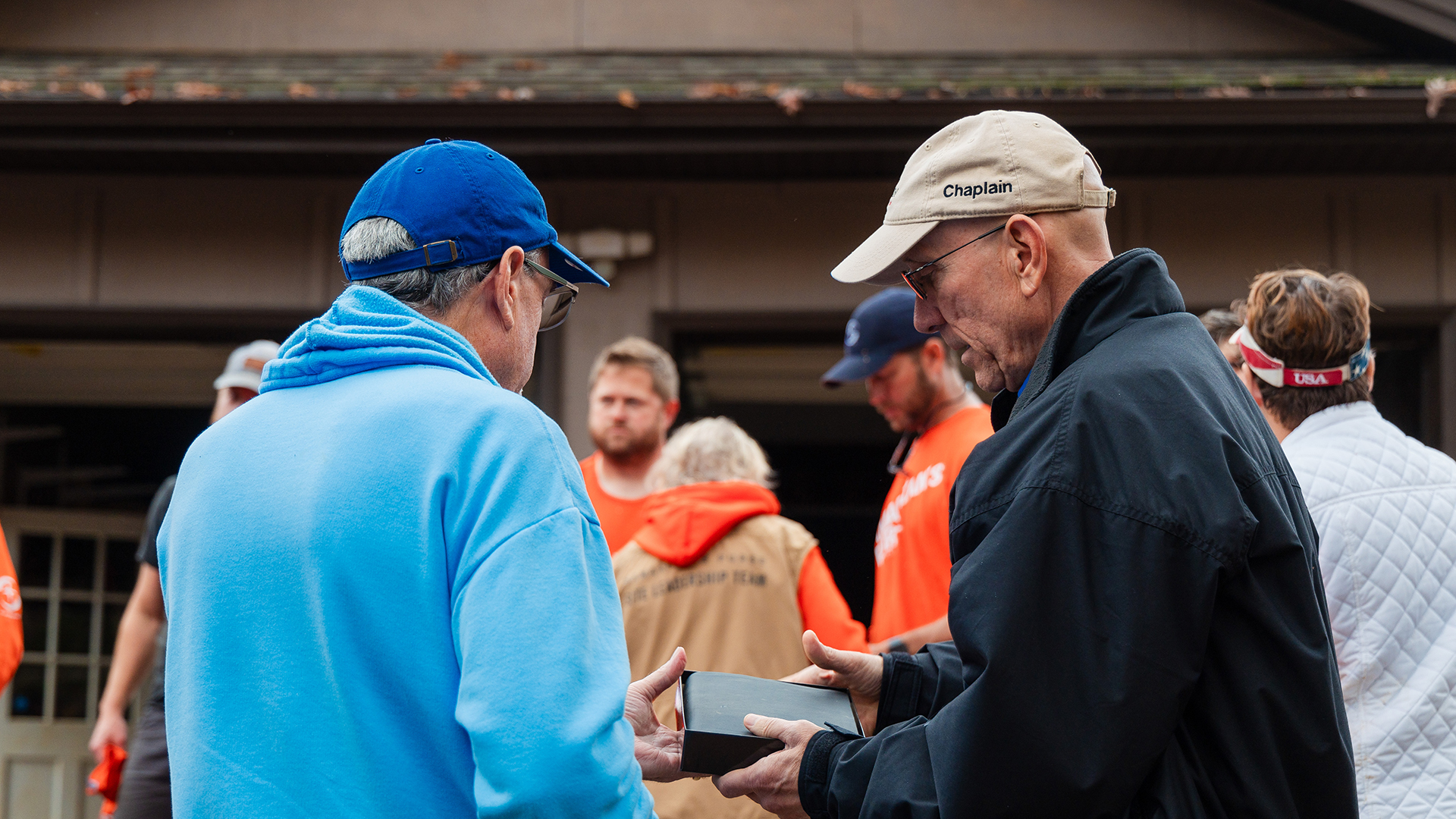 “Hey, we got a new brother in Christ,” Matt announced as he and John approached the volunteer group. Shouts and cheers erupted from across the yard, and John got lots of hugs from volunteers as they rejoiced together over his newfound faith.
